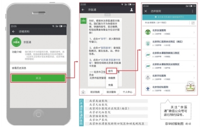 此外,市医管局还推出了“京医通”官方微信服务平台。患者可关注其微信公众号,关联绑定京医通卡或社保卡,预约7天内号源。若想取消预约,可在就诊当天零点前在线退号退费,零点后需到医院窗口办理。凭挂号单,上午号在11点30分前办理,下午号在16点30分前办理,挂号费10个工作日内退还。