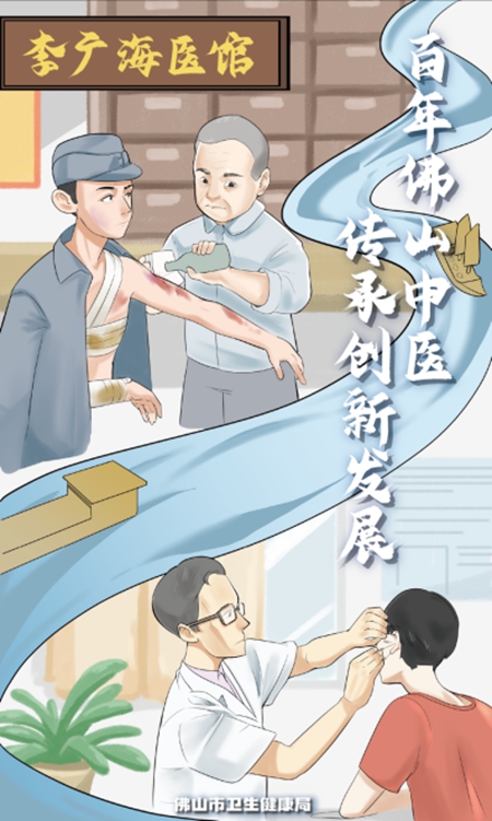 佛山一代名中医李广海,被誉为“骨伤科圣手”,在抗日战争期间,他经常免费收治抗日游击支队的伤病员,以精湛医术和满腔热情支持抗日斗争。1956年,佛山中医院成立,李广海担任副院长并一手创建了该院骨伤科,李氏骨伤成为国内岭南代表性流派,相继孕育出陈谓良、钟广玲等广东省名中医。新时代,新一代佛山中医药人将推进传承创新发展中医药的责任扛在肩上,努力创造佛山中医药新辉煌。