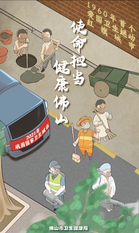 1960年,佛山荣获全国首个“全国爱国卫生运动红旗城市”称号。1992年,佛山成为全国第一批“国家卫生城市”。2021年,佛山再次进入迎接国家卫生城市(镇)复审的重要阶段。如今,从“要我做”到“我要做”,从“讲卫生”到“大健康”,爱国卫生运动已成为佛山永远的进行时。巩固国家卫生城市,共建共享健康佛山,佛山人一直在行动。