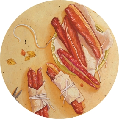 不同品类的腌腊肉制品因原料、工艺与地域微生物群落差异,形成各具特色的风味图谱。火腿类以醛类、醇类物质为主,散发类似坚果或青草等香气;广式香肠添加酒类,酯类物质突出,风味甜润;川式香肠则融合香料与发酵风味,辛辣醇厚;烟熏腊肉的关键在于熏制过程中产生的愈创木酚、丁香酚等酚类物质,赋予独特烟熏香……