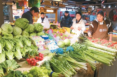 1月29日,市民在北京市东城区一家蔬菜市场挑选新鲜蔬菜。 |