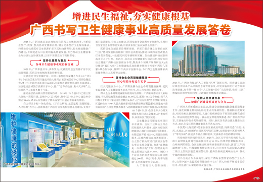 2025年,广西壮族自治区持续深化医药卫生体制改革,不断促进医疗、医保、医药协同发展和治理,健全完善医疗卫生服务体系,持续推动优质医疗卫生资源扩容下沉和均衡布局,扎实推进健康广西建设,有效促进人口长期均衡高质量发展,有力推动卫生健康事业与经济社会协调发展,以实干实绩交出了亮眼答卷。